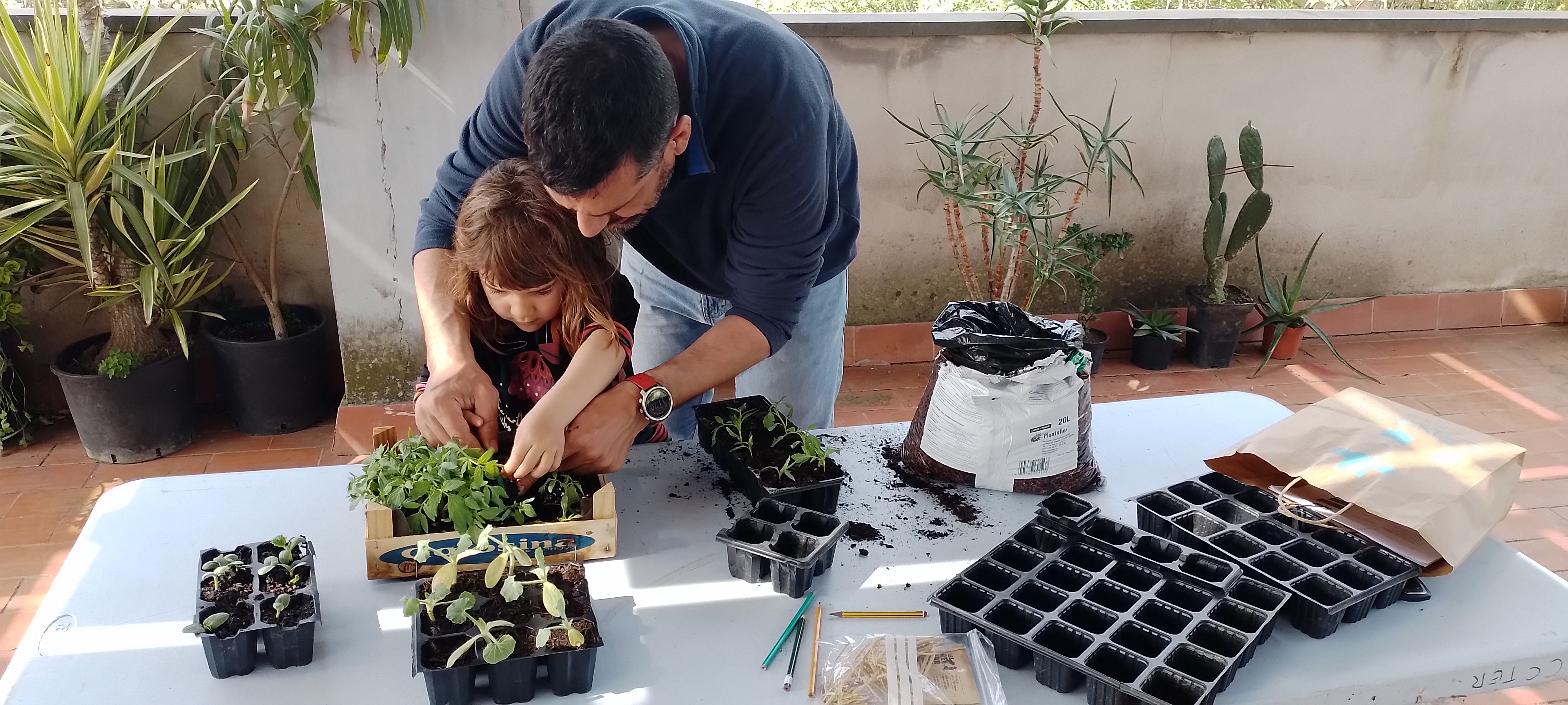 Com dèiem, des de Mulfulles també realitzem tallers i cursos a diferents centres cívics i espais comunitaris per promoure els horts urbans, ja sigui en jardins, patis, terrats o balcons. Com iniciar un hort a casa, quins recipients són millors, quin sustrat utilitzar, com associar els cultius en una jardinera petita, com fer el propi planter… són algunes de les qüestions que es tracten en el curs i que podem fer tant dirigit a adults com a un públic familiar, i és que creiem que és important involucrar la mainada en aquesta tasca tan engrescadora com saludable.